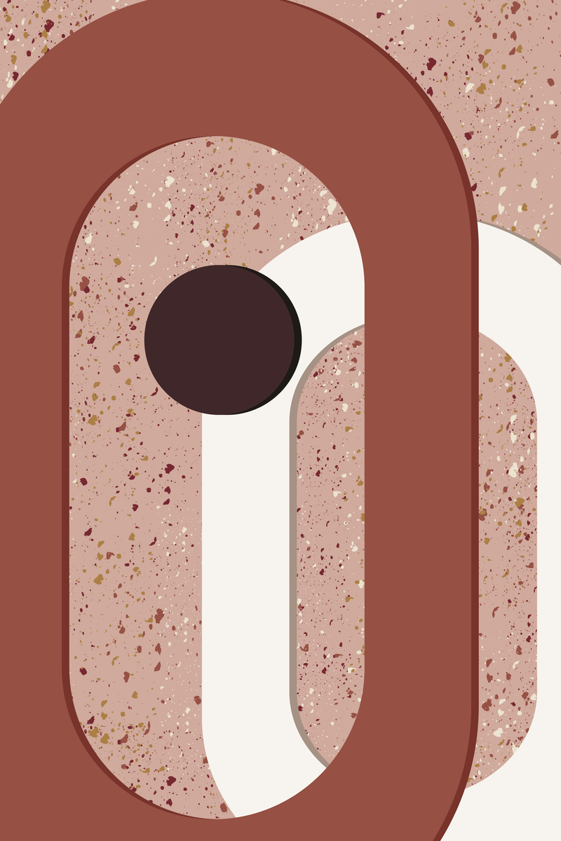 Op deze 20 x 30 cm poster gebeurt veel tegelijk. De terrazzo achtergrond zorgt voor structuur, terwijl de abstracte ovale vormen zorgen voor een modern en gelaagd effect. In het ontwerp komen verschillende tinten blauw en gebroken wit terug.