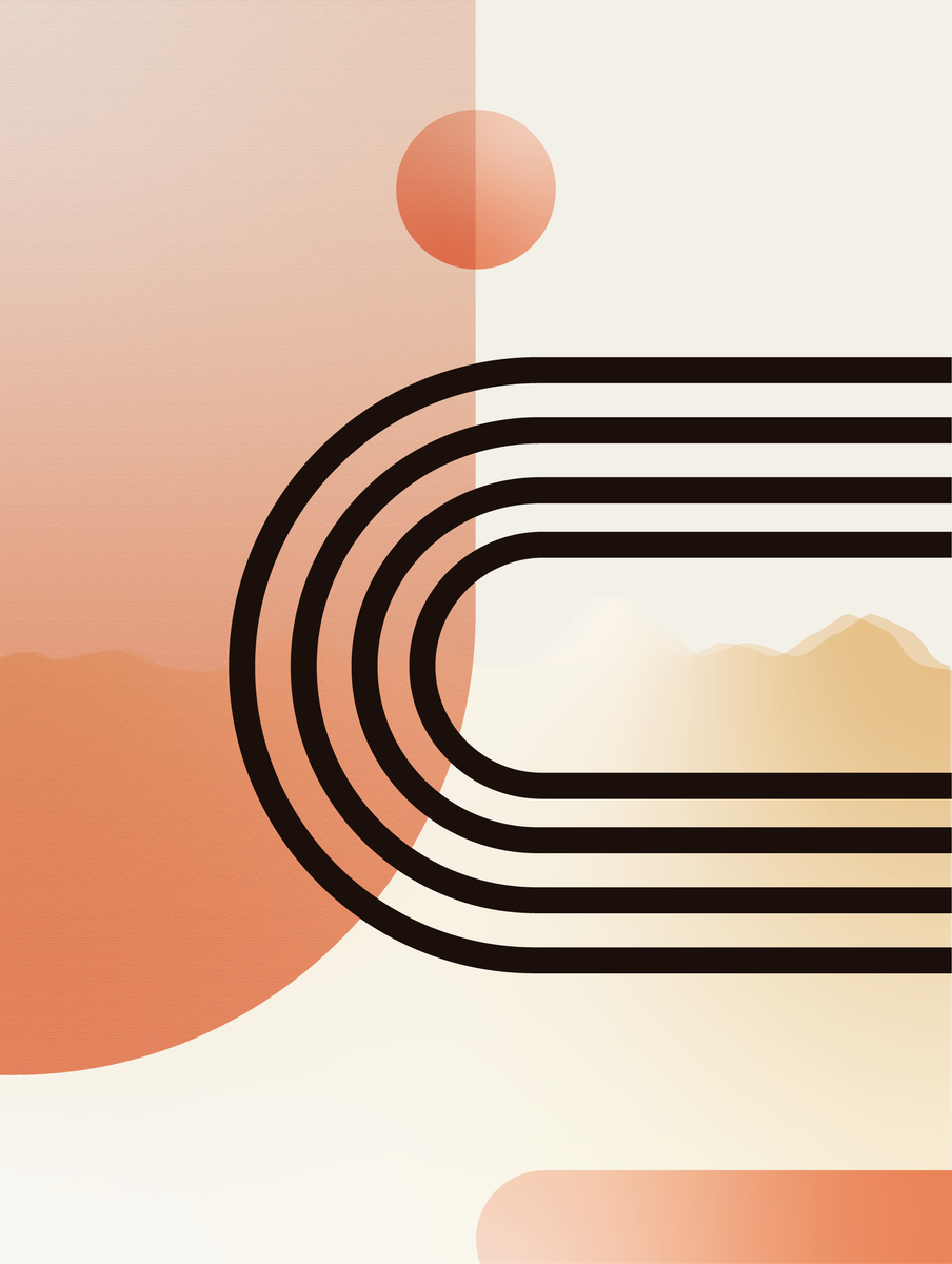 Houd jij van abstracte ontwerpen? Dan is deze 30 x 40 cm aluminium plaat met gebogen lijnen en geometrische vormen de perfecte keuze. Verschillende bruine tinten vloeien in elkaar over, terwijl strakke donkerbruine bogen voor een krachtig contrast zorgen.