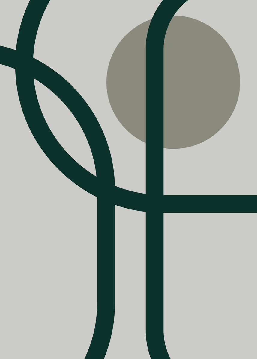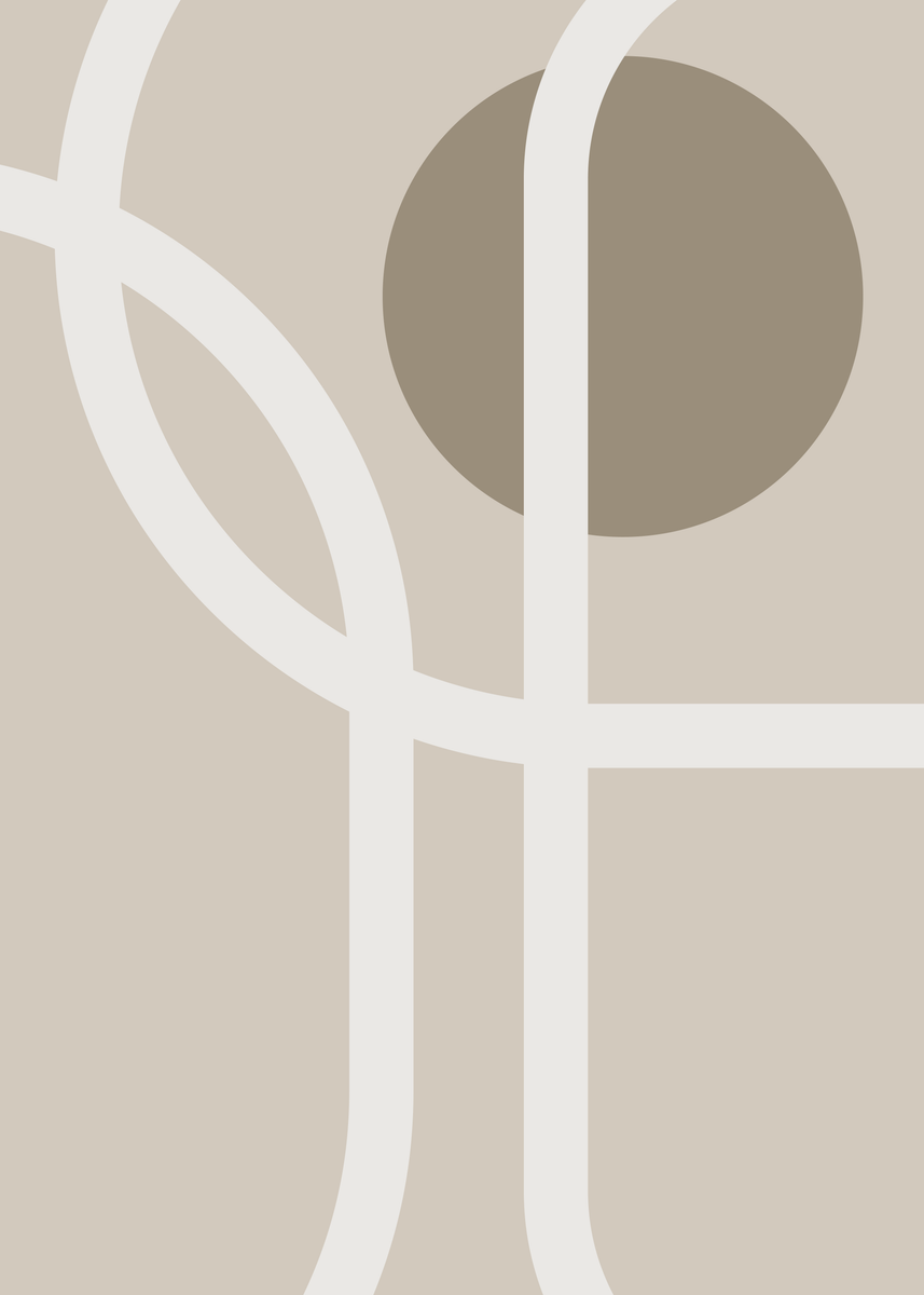Breng kalmte in jouw interieur met deze 50 x 70 cm poster. Het ontwerp heeft een licht beige achtergrond, waar meerdere gebogen lijnen in taupe en twee tinten blauw overheen lopen. Rechtsboven bevindt zich een grote cirkel met een diepe donkerblauwe kleur, wat tegen het zwart aan zit.