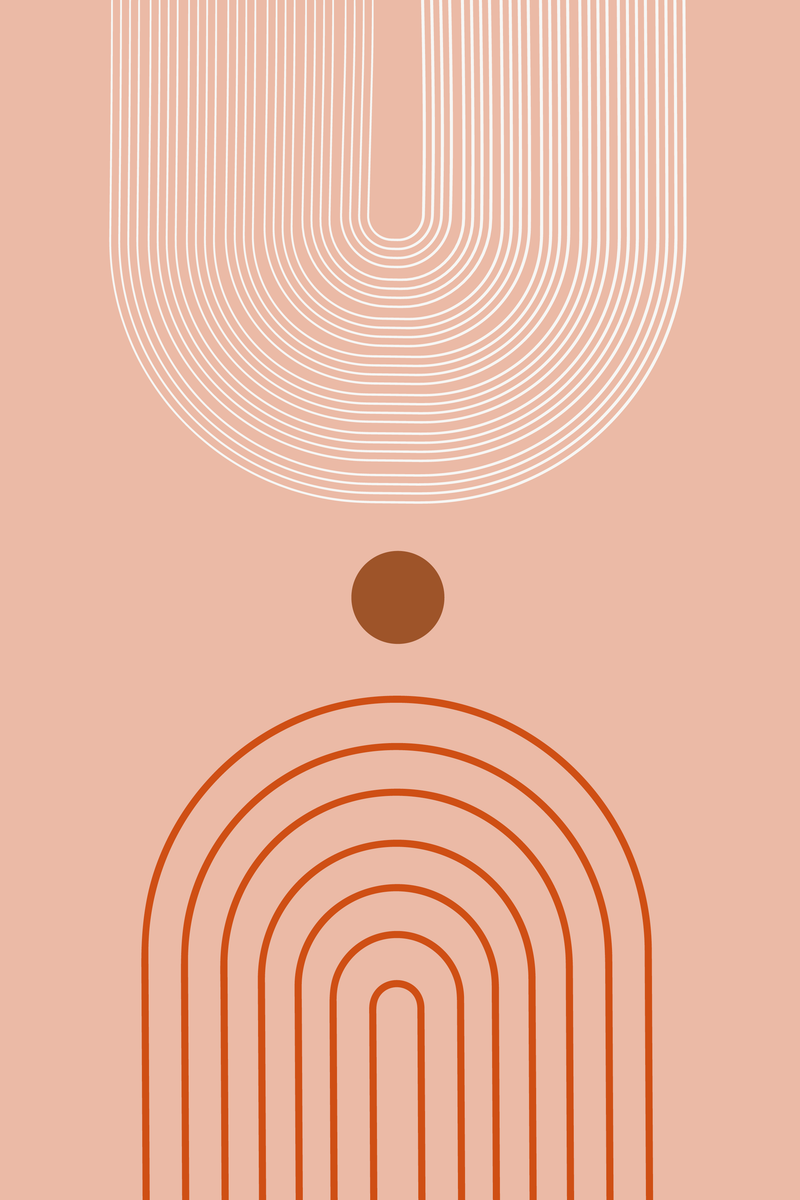 Soms is eenvoud het krachtigste statement. Deze 20 x 30 cm poster bewijst dat! Het ontwerp trekt de aandacht met een intigrerend spel van lijnen en vormen. Bovenaan vloeien dunne witte lijnen samen in een brede U-vorm, terwijl onderaan bruine lijnen een halve boog vormen. Daartussen zweeft een zwarte cirkel als een visueel rustpunt. De warme, taupekleurige achtergrond geeft het ontwerp een zachte uitstraling.