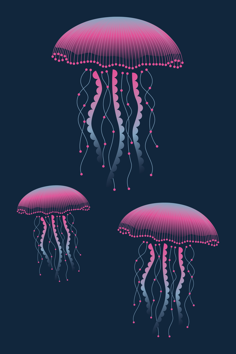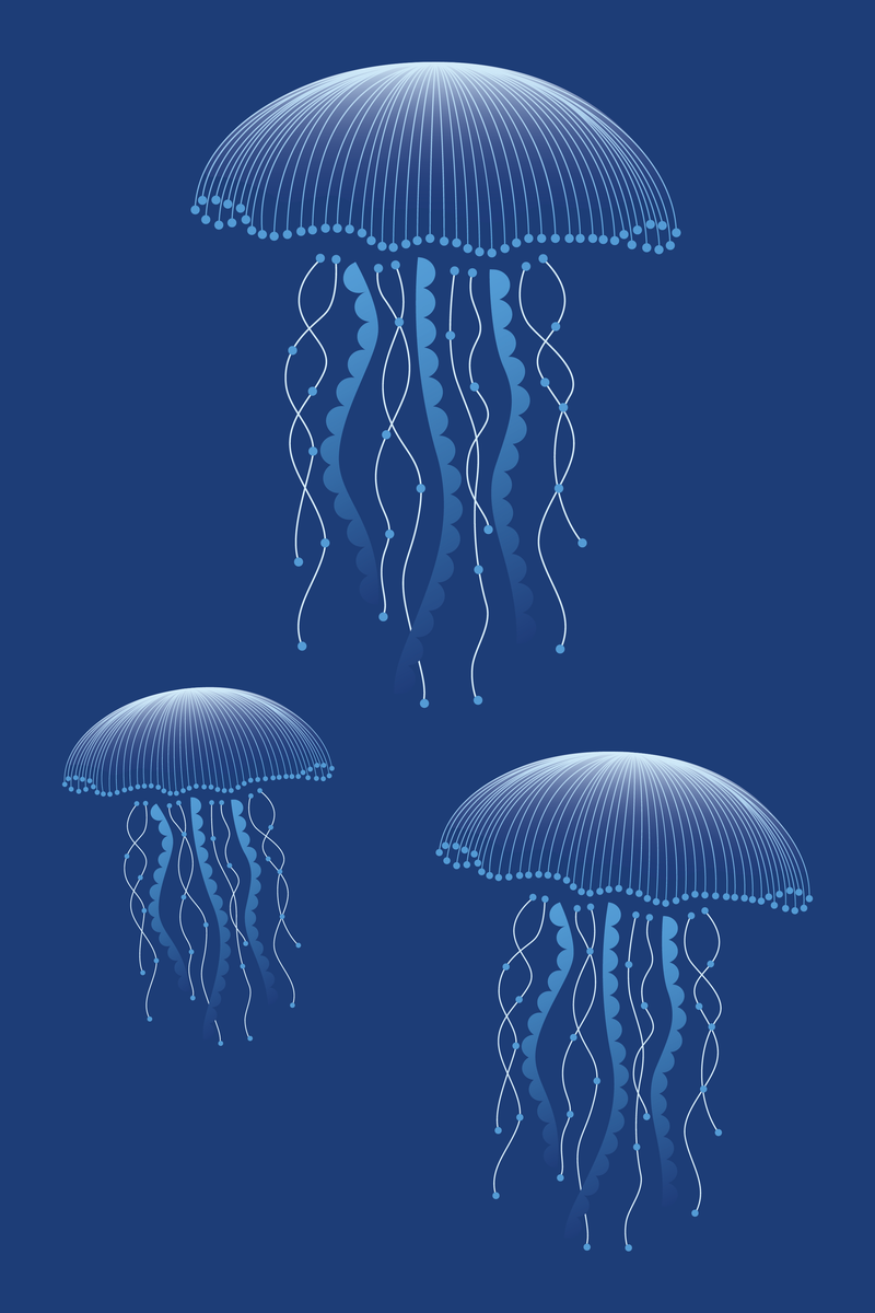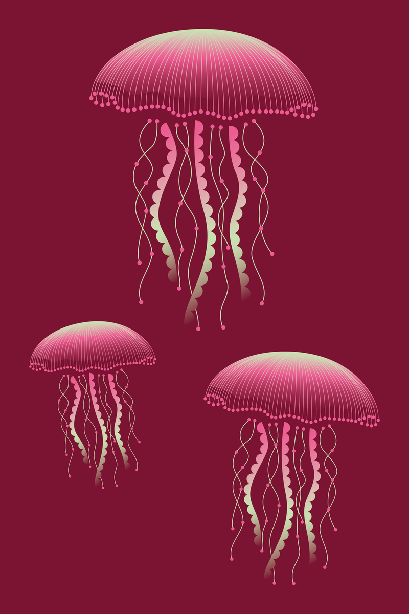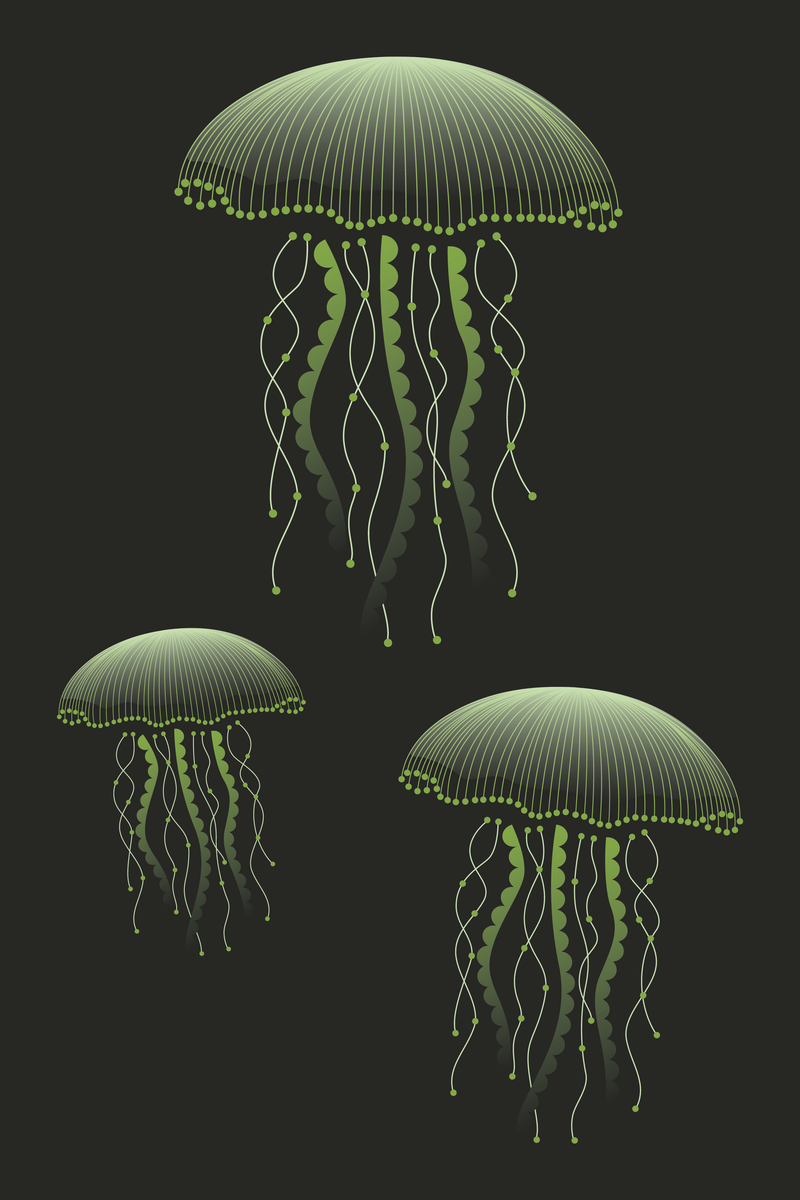Deze poster van 20 x 30 cm vangt de mysterieuze elegantie van drie zwevende kwallen, hun goudgroene tentakels dansend op de zachte stroming van een diepe, donkergroene oceaan. Een stijlvolle blikvanger die rust en elegantie brengt in ieder interieur, of het nu minimalistisch, modern of vintage is.