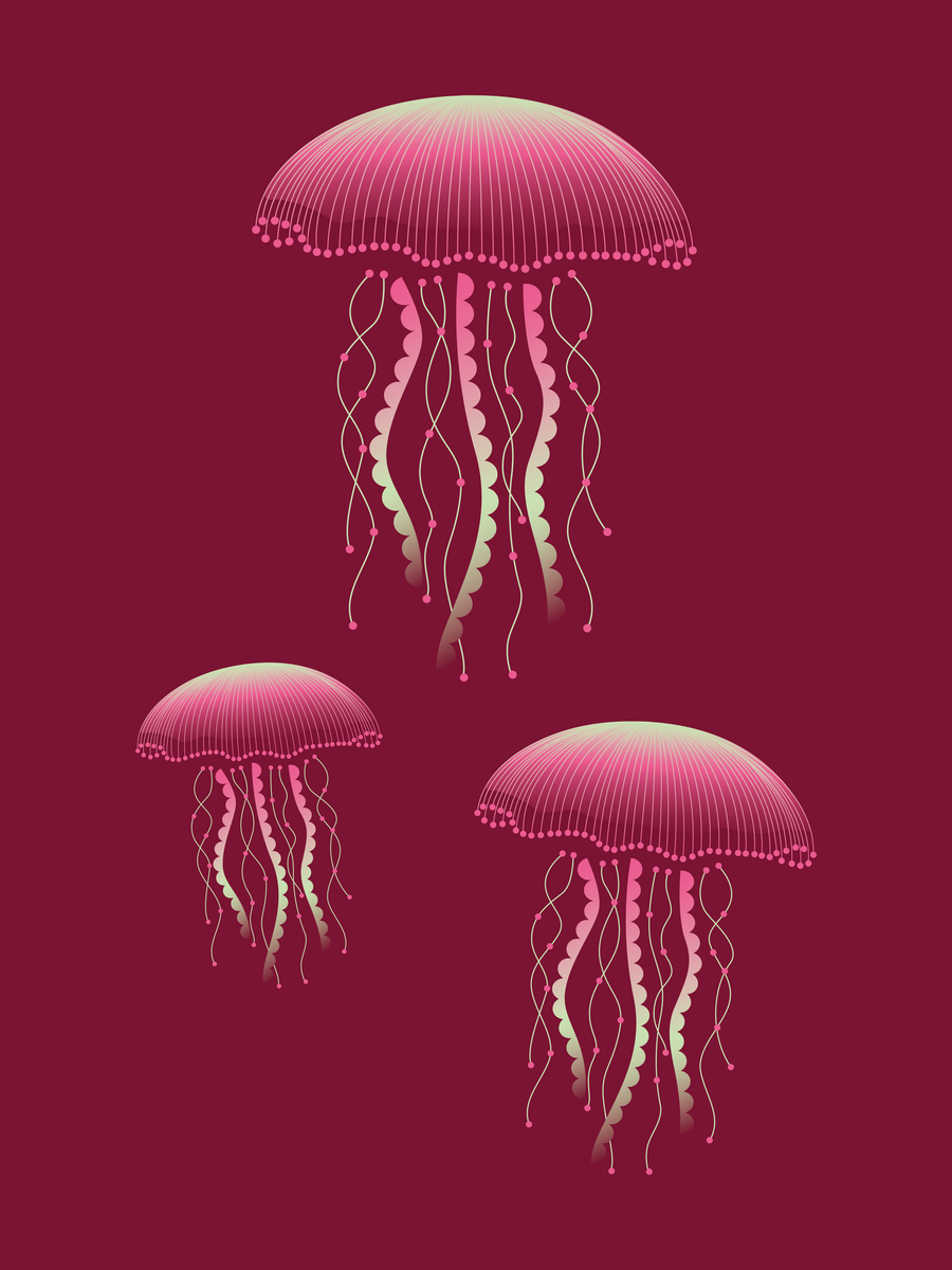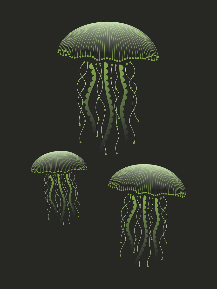 Deze poster van 30 x 40 cm vangt de mysterieuze elegantie van drie zwevende kwallen, hun goudgroene tentakels dansend op de zachte stroming van een diepe, donkergroene oceaan. Een stijlvolle blikvanger die rust en elegantie brengt in ieder interieur, of het nu minimalistisch, modern of vintage is.