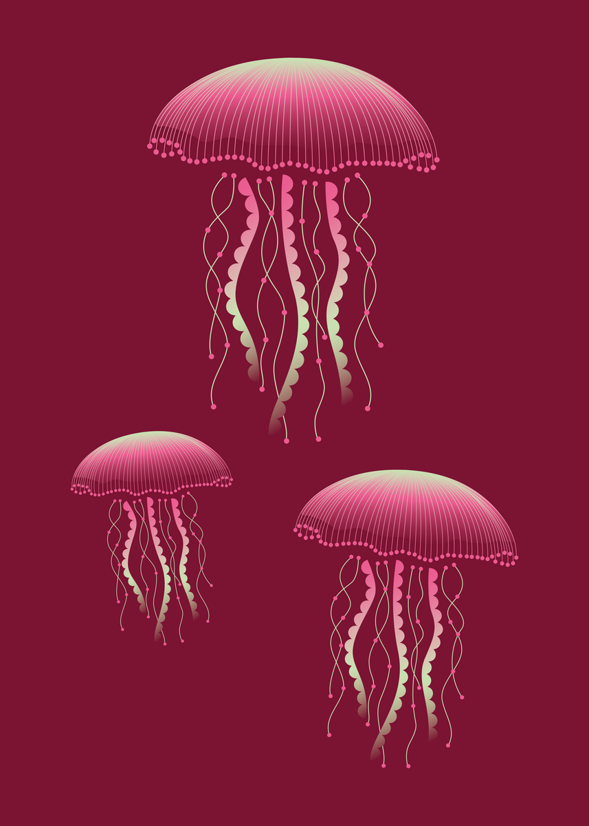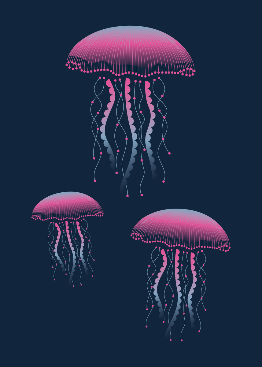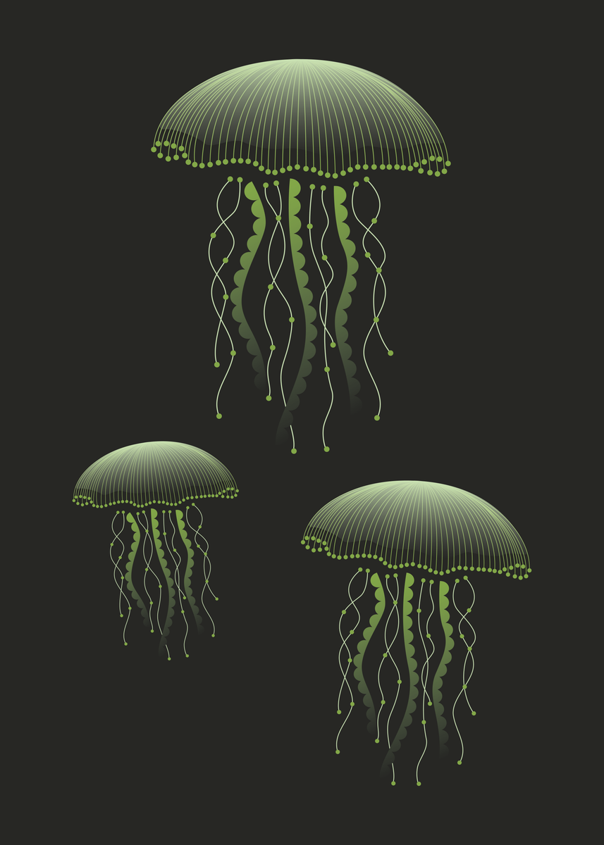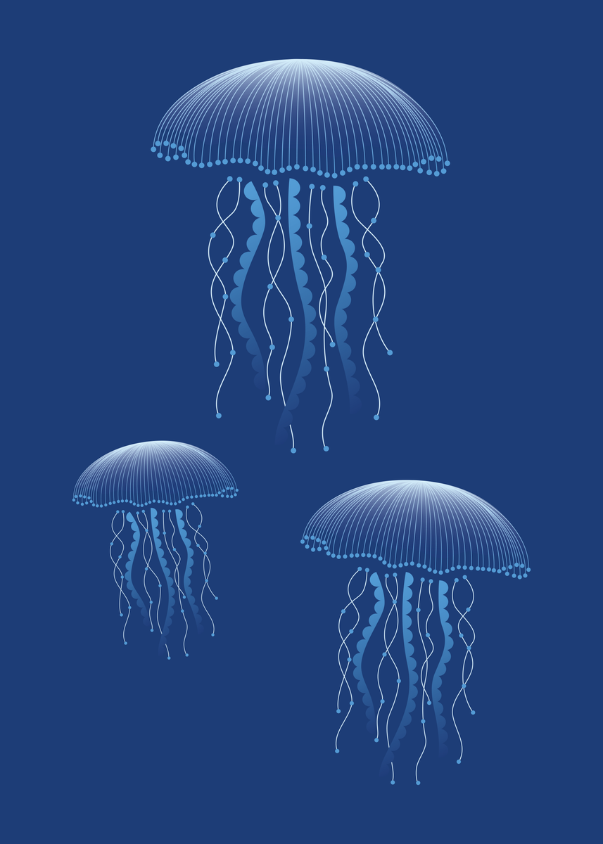 Deze poster van 50 x 70 cm vangt de mysterieuze elegantie van drie zwevende kwallen, hun goudgroene tentakels dansend op de zachte stroming van een diepe, donkergroene oceaan. Een stijlvolle blikvanger die rust en elegantie brengt in ieder interieur, of het nu minimalistisch, modern of vintage is.
