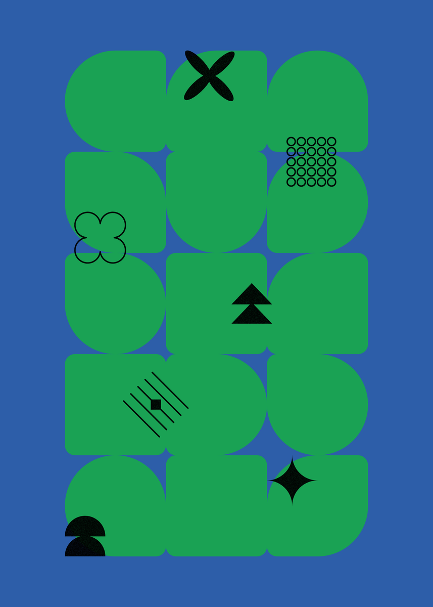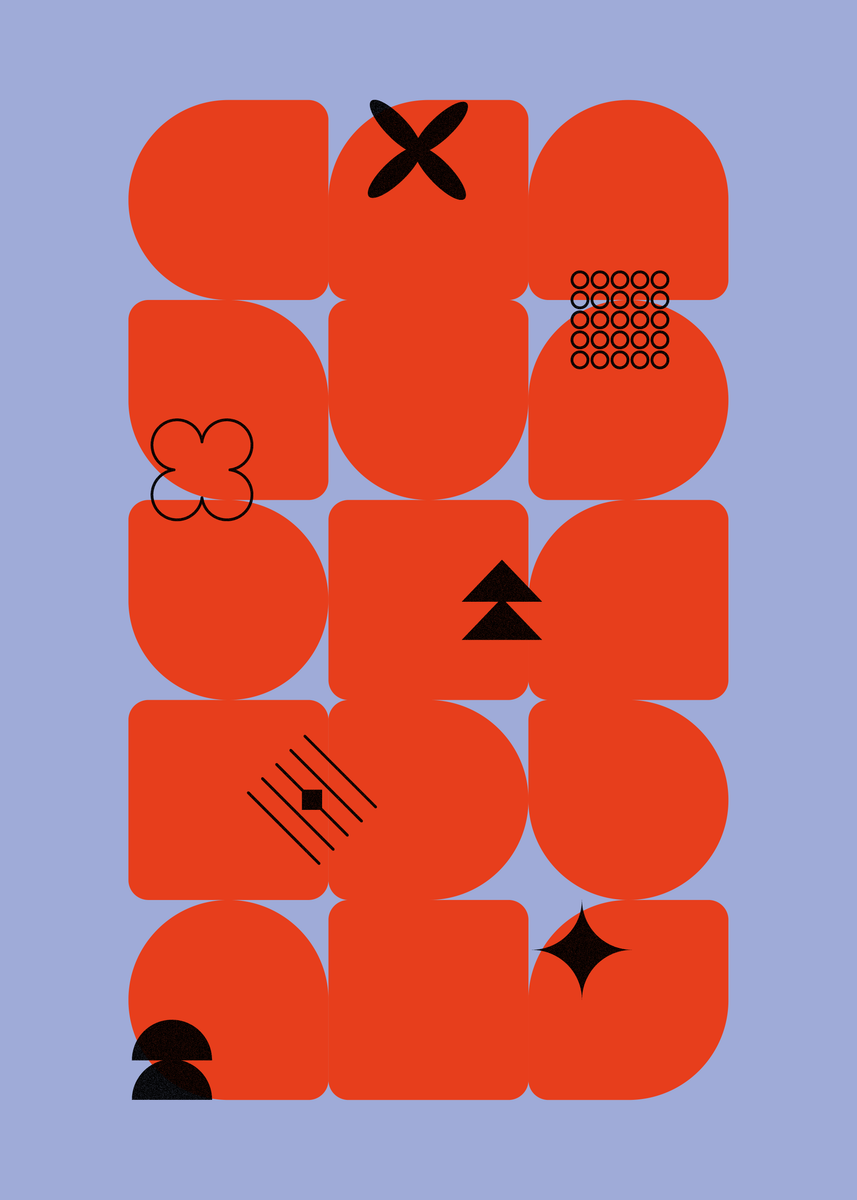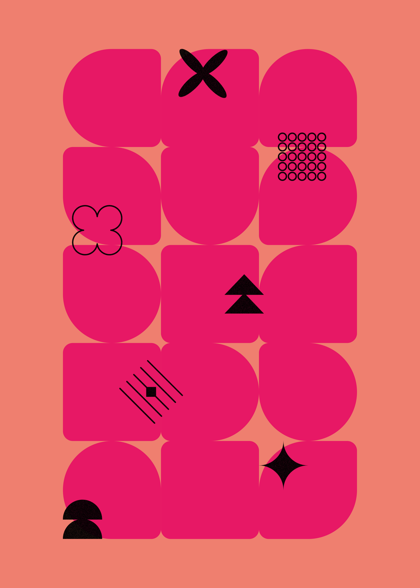Deze poster van 50 x 70 cm bestaat uit roze geometrische blokken op een rode achtergrond, gecombineerd met zwarte abstracte symbolen. De zwarte elementen hebben een subtiel korrelig effect, wat een uniek detail toevoegt. Verder zorgt de asymmetrische plaatsing van de zwarte elementen ervoor dat het ontwerp aantrekkelijk blijft om naar te kijken. De poster is perfect voor de liefhebbers van abstract en minimalistisch design.