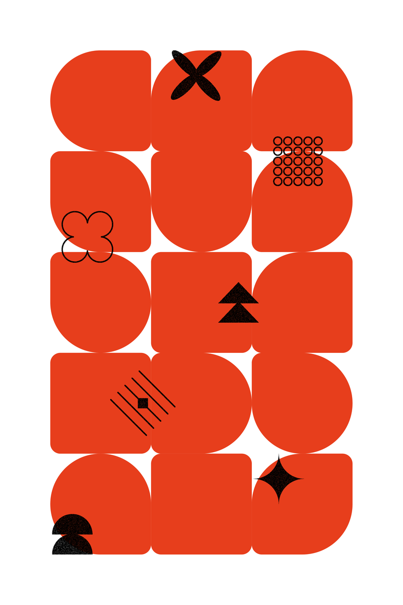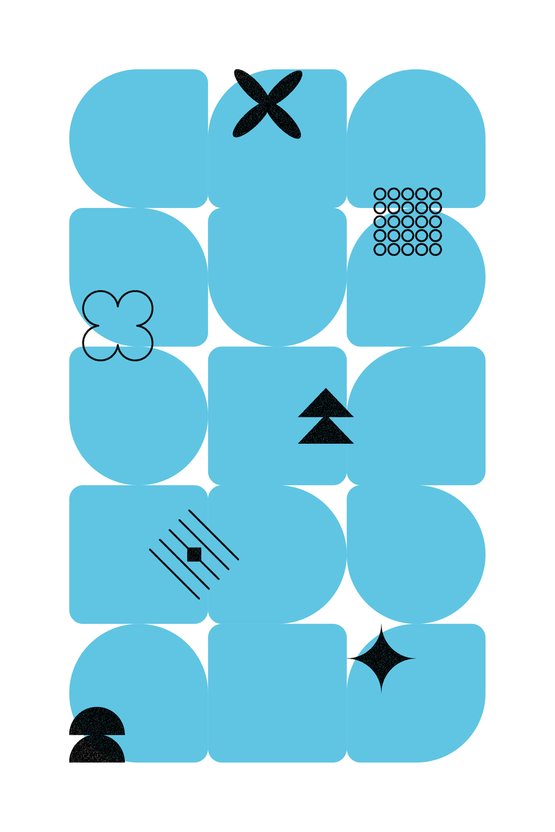 Deze poster van 20 x 30 cm bestaat uit groene geometrische blokken op een witte achtergrond, gecombineerd met zwarte abstracte symbolen. De zwarte elementen hebben een subtiel korrelig effect, wat een uniek detail toevoegt. Het sterke contrast tussen de groene vormen en de witte achtergrond zorgt ervoor dat het ontwerp er echt uitspringt.