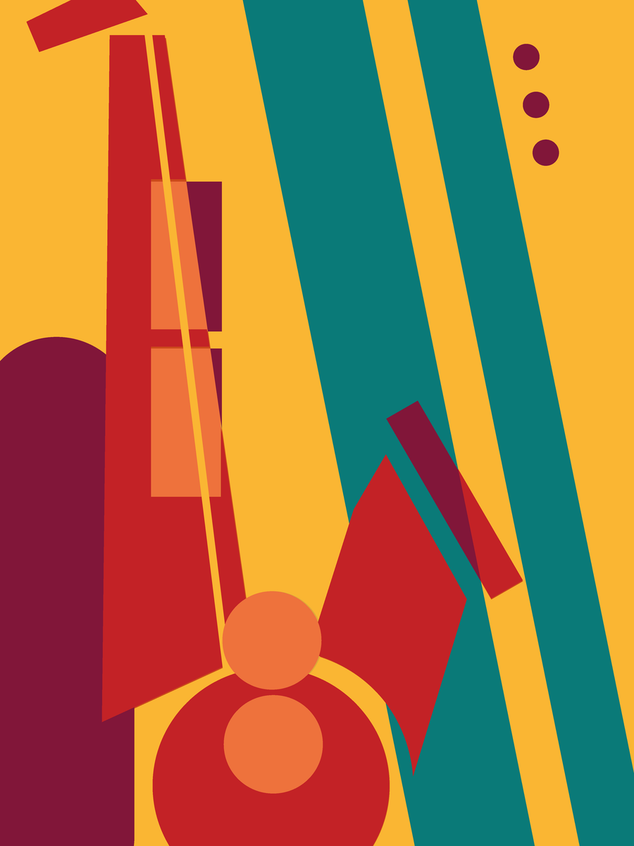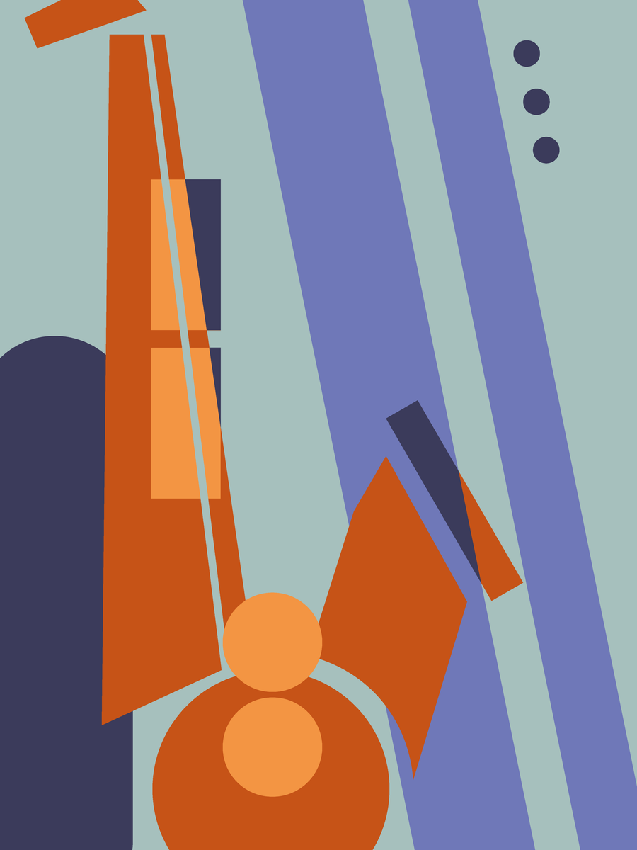 Haal de sfeer van jazz in huis met deze abstracte 30 x 40 cm poster! Het ontwerp combineert de iconische vorm van een saxofoon met verschillende geometrische figuren. Door de kleuren oranje, blauw, geel en bruin is de poster niet alleen een muzikale, maar ook een kleurrijke toevoeging aan je interieur.