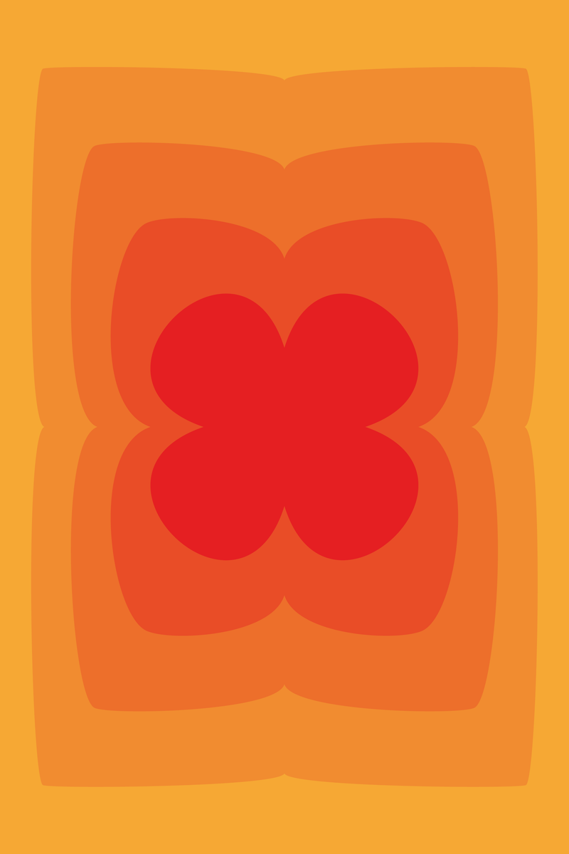 Deze poster van 20 x 30 cm toont een klavertje vier, verwerkt in een gelaagd ontwerp van groene en oranje tinten. De vloeiende kleurovergangen creëren een diepte-effect in het ontwerp. De poster is een kleurrijke en opvallende toevoeging voor ieder interieur.