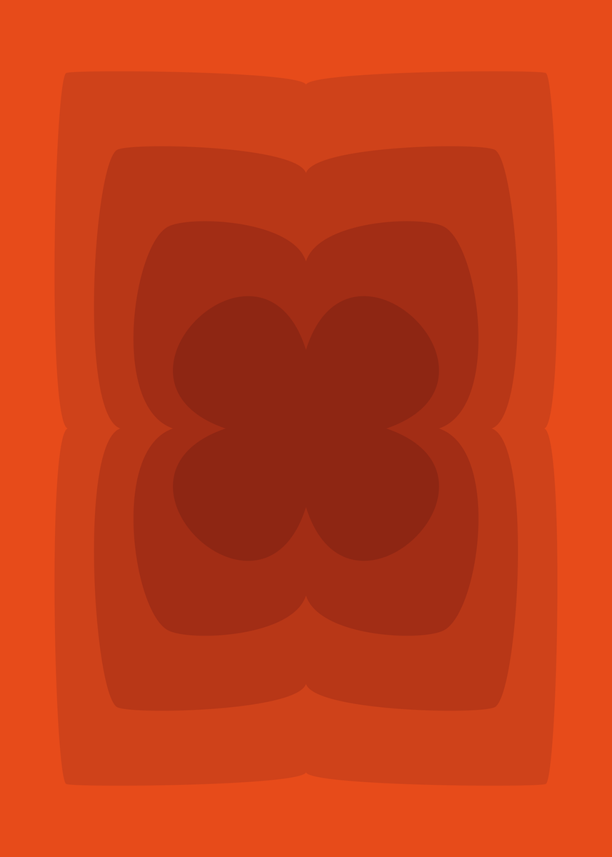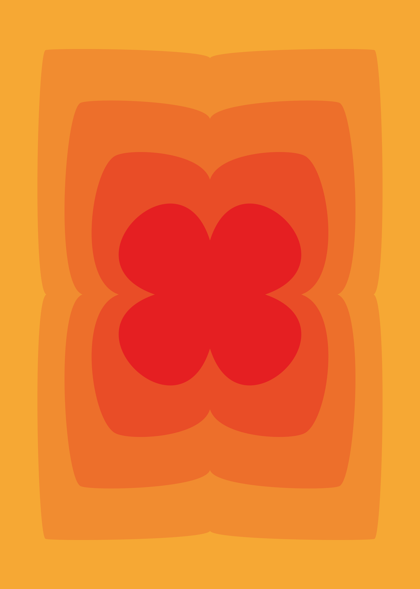 Deze poster van 50 x 70 cm toont een klavertje vier, verwerkt in een gelaagd ontwerp van groene en oranje tinten. De vloeiende kleurovergangen creëren een diepte-effect in het ontwerp. De poster is een kleurrijke en opvallende toevoeging voor ieder interieur.