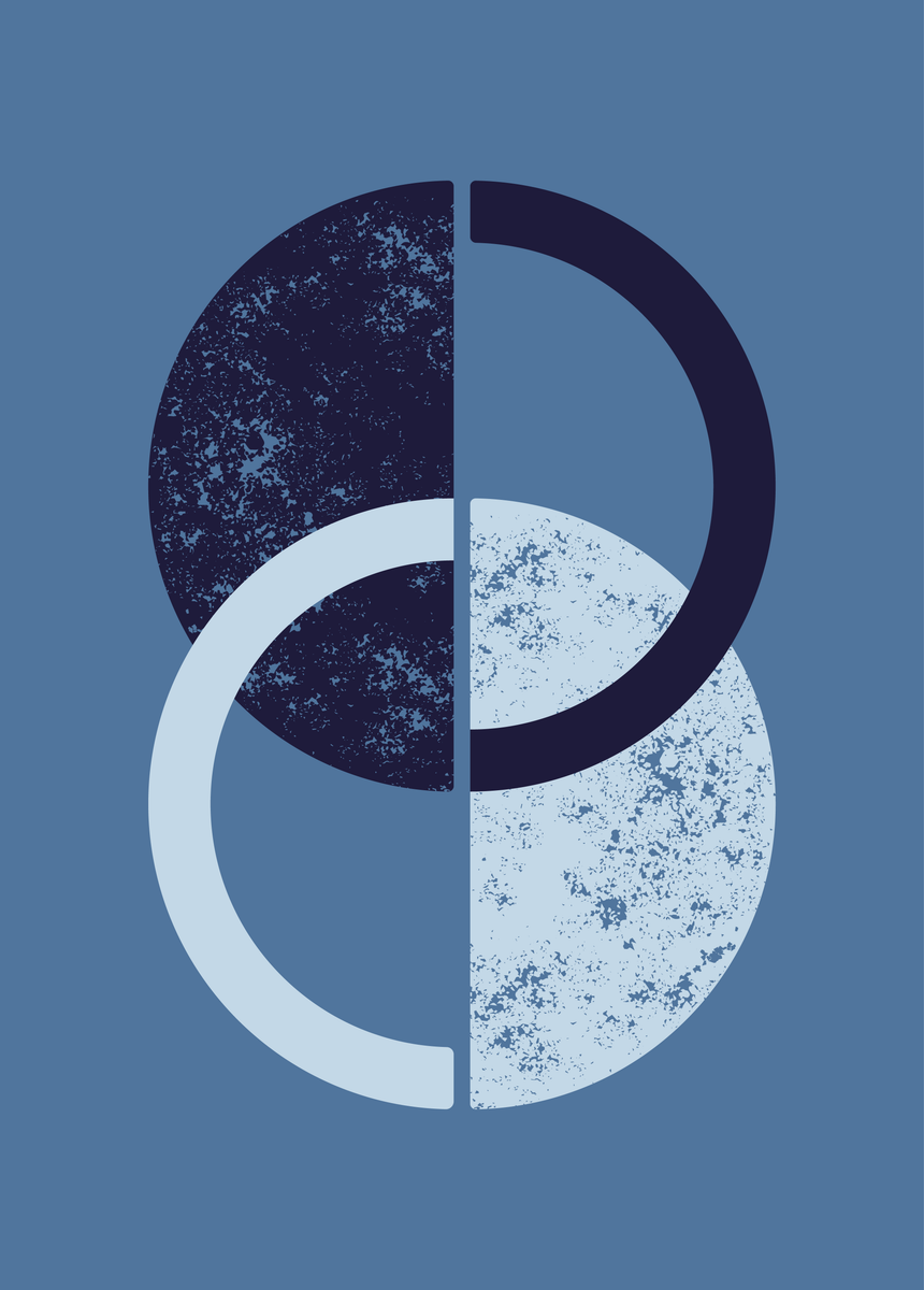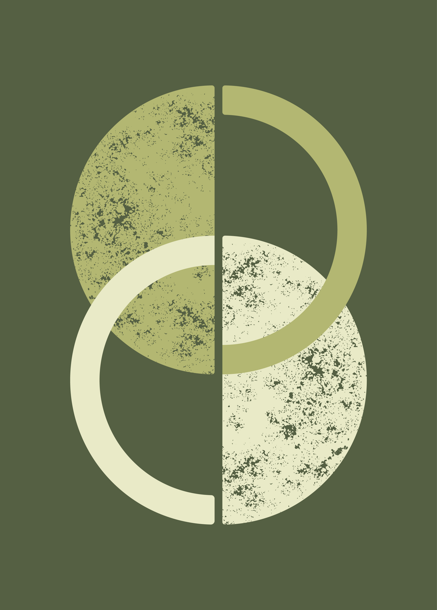 Op deze 50 x 70 cm poster zweven twee halve manen rustig door elkaar tegen een beige achtergrond. De ene maan kleurt terracotta, terwijl de andere een taupe tint heeft. Als je goed kijkt ontdek je in de gevulde helften een structuur die doet denken aan een maanlandschap met kraters en reliëf. De poster creëert een rustpunt aan je muur, dat ruimte geeft voor eigen interpretatie.
