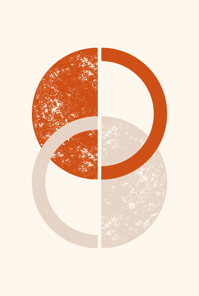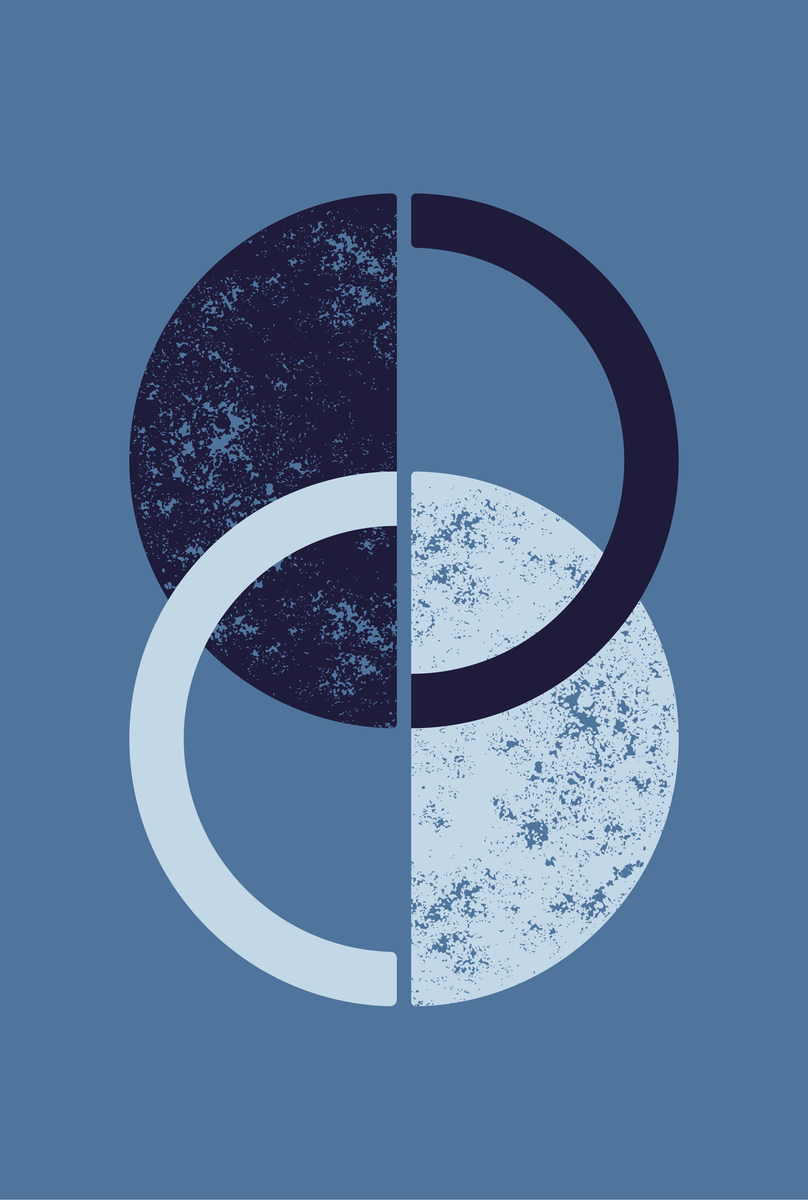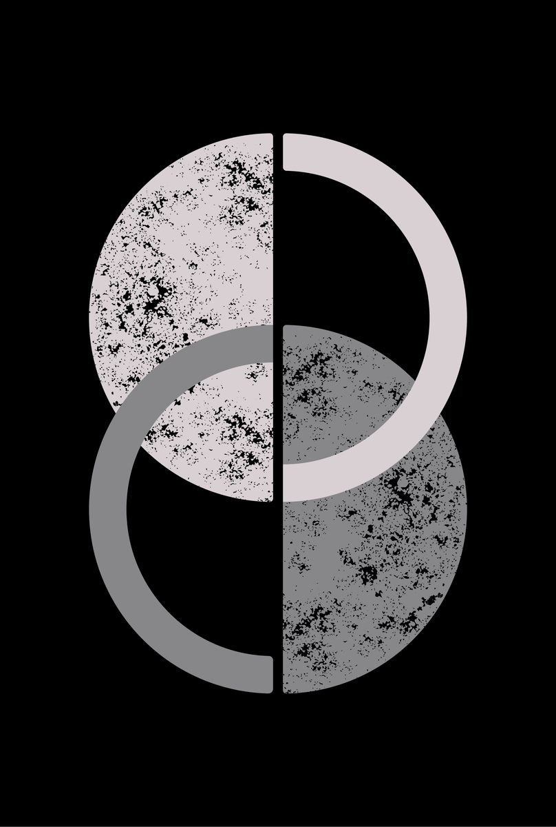 Op deze 20 x 30 cm poster zweven twee halve manen rustig door elkaar tegen een achtergrond zo donker als de nacht. De ene maan kleurt zacht beige, de andere warm bruin. Als je goed kijkt ontdek je in de gevulde helften een structuur die doet denken aan een maanlandschap met kraters en reliëf. De poster creëert een rustpunt aan je muur, dat ruimte geeft voor eigen interpretatie.