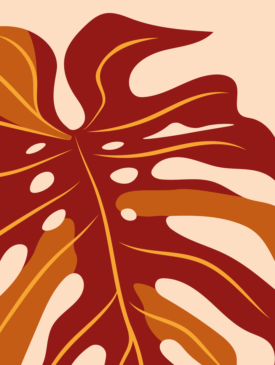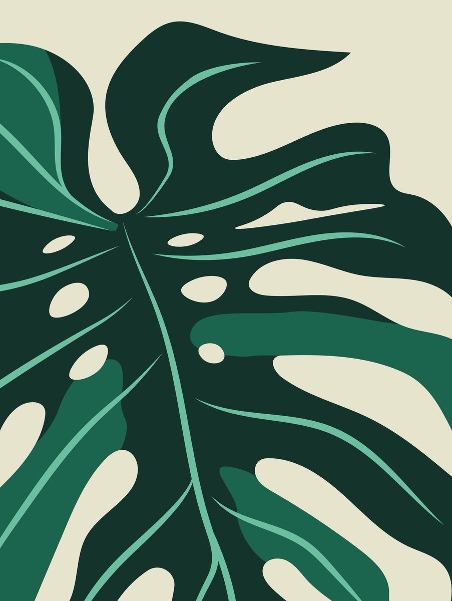Deze minimalistische poster van 30 x 40 cm brengt een warme, tropische sfeer in huis. Het monstera blad, uitgevoerd in diepe groentinten, contrasteert prachtig met de zachte perzikkleurige achtergrond. De kleuren doen denken aan een zomerse middag, waar een zacht briesje de bladeren laat ritselen in het zonlicht. Dit botanische ontwerp is perfect voor wie zijn interieur wil verrijken met een rustige, maar fleurige poster.