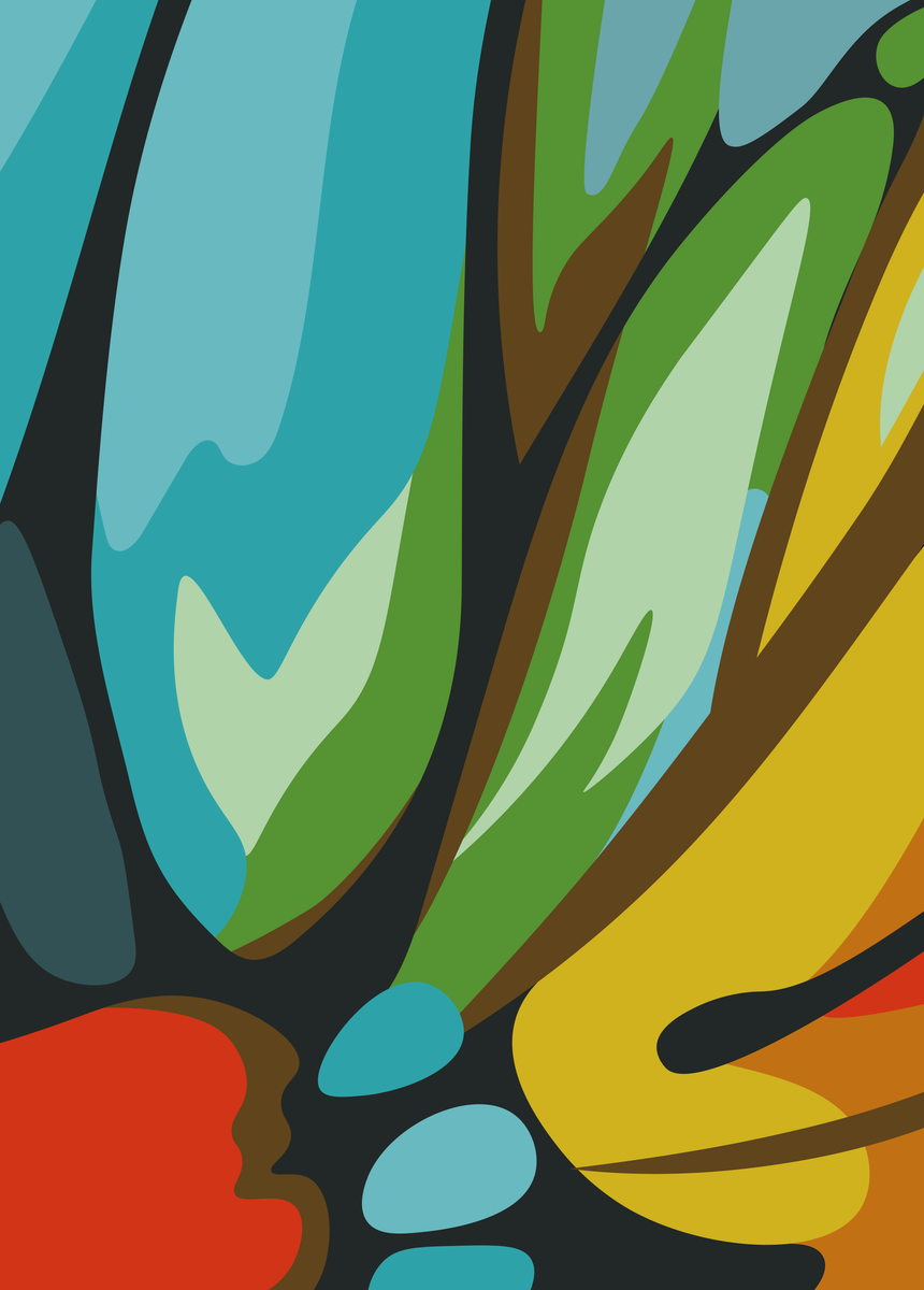 Een close-up van de natuur op zijn mooist. Dit moderne ontwerp van 50 x 70 cm toont een gedetailleerd fragment van een vlindervleugel, waarbij levendig blauw en frisgroen een mooi contrast vormen met de donkere contouren in het ontwerp. Een unieke combinatie van natuur en kunst die perfect past in diverse interieurstijlen.