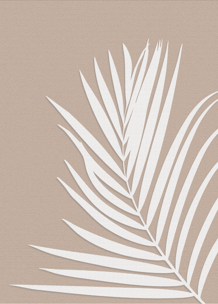 De eenvoud van een palmblad komt prachtig tot uiting in dit minimalistische ontwerp. Deze poster van 50 x 70 cm toont een beige palmblad met een subtiele schaduw op een donkerbruine achtergrond. De fijne canvasachtige textuur voegt een extra dimensie toe en zorgt voor een unieke uitstraling. Dankzij de neutrale kleuren past deze poster perfect in jouw Scandinavische of Japandi interieur.