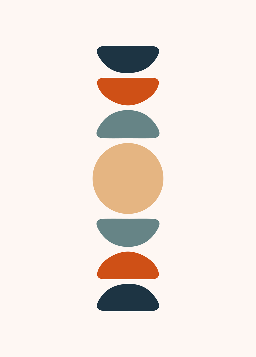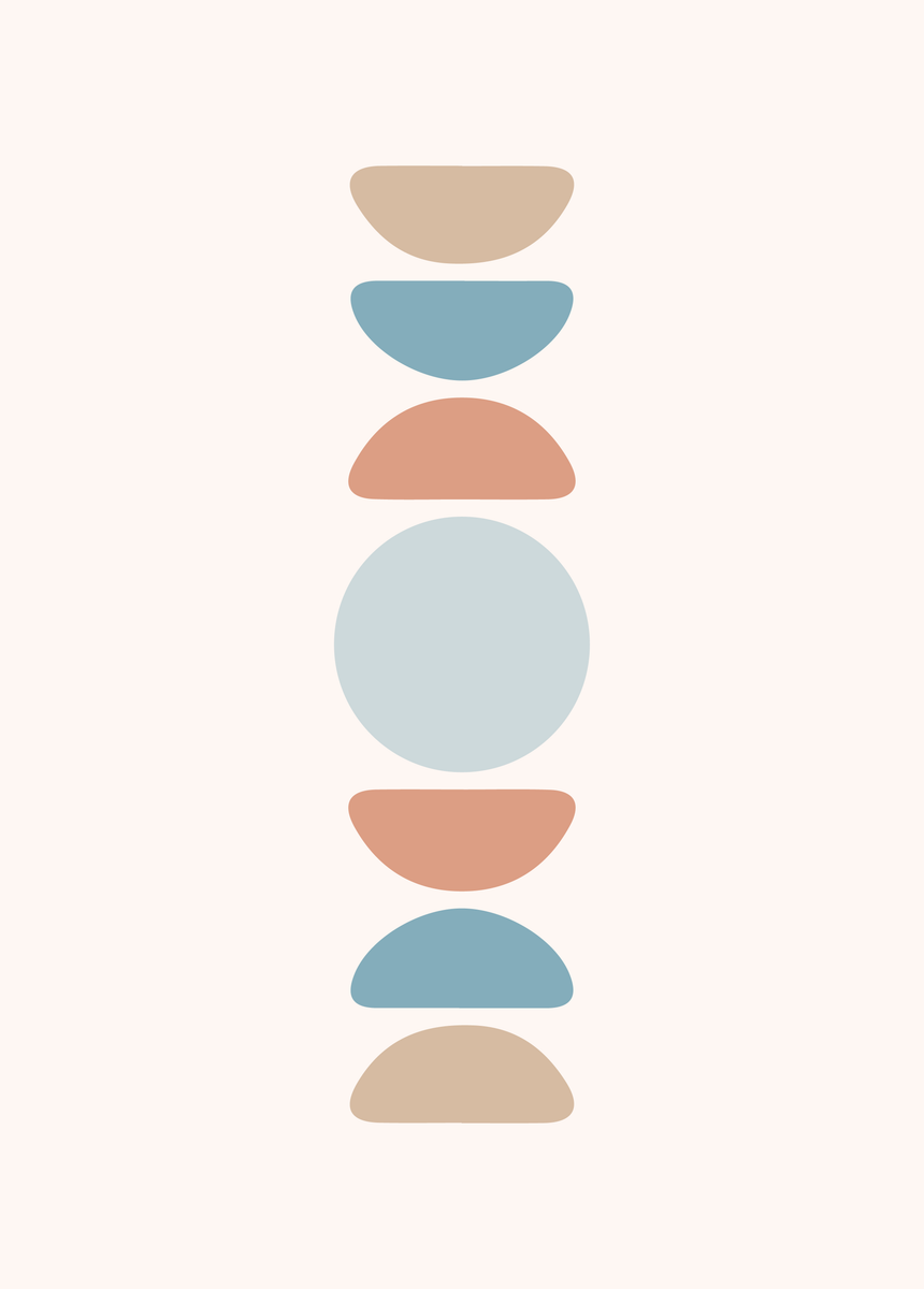 Deze minimalistische poster van 50 x 70 cm toont een abstracte compositie van geometrische vormen die geleidelijk verlopen van lichtblauw naar diep donkerblauw. De vloeiende overgang van tinten creëert een rustgevend effect. De neutrale beige achtergrond zorgt ervoor dat de geometrische vormen goed naar voren komen.